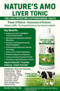 Nature’s AMO Liver Tonic — जनावरांच्या लिव्हरचे आरोग्य राखणारेभूक वाढवणारेदूध उत्पादन  एकूणच कार्यक्षमता वाढवणारे सर्वोत्तम हर्बल टॉनिक!